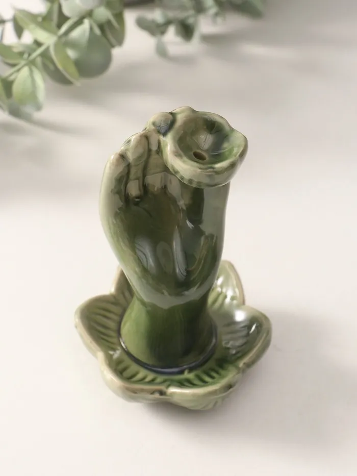 Подставка для благовоний керамика "Цветок в руке" 7,5х7,5х10,5 см