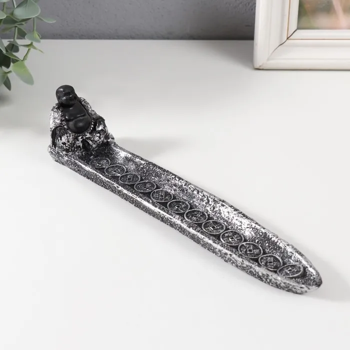 Подставка для благовоний «Хотей в серебристом халате», полистоун, серебро, 22.5×4.5×5 см — Характеристики