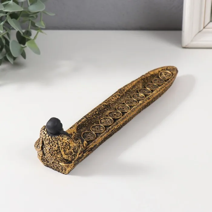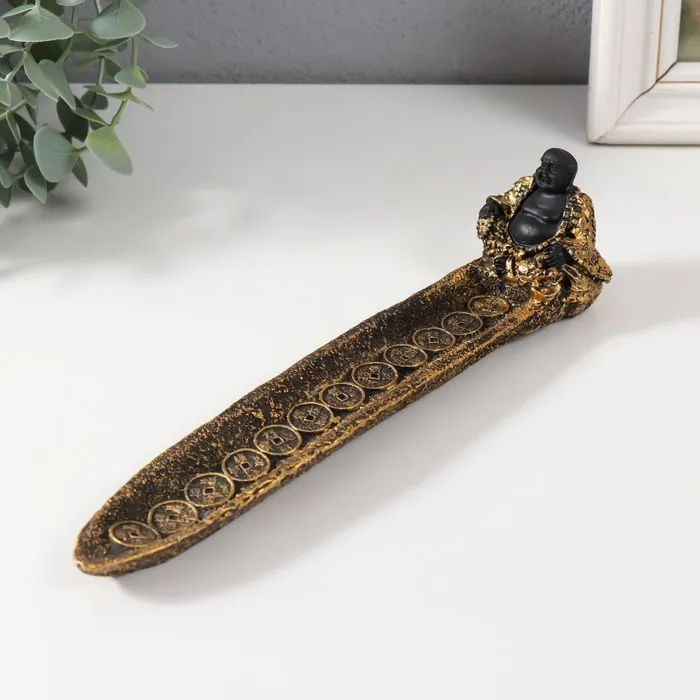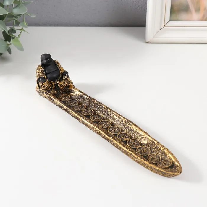 Подставка для благовоний «Хотей в золотом халате», полистоун, золото, 22.5×4.5×5 см — Характеристики