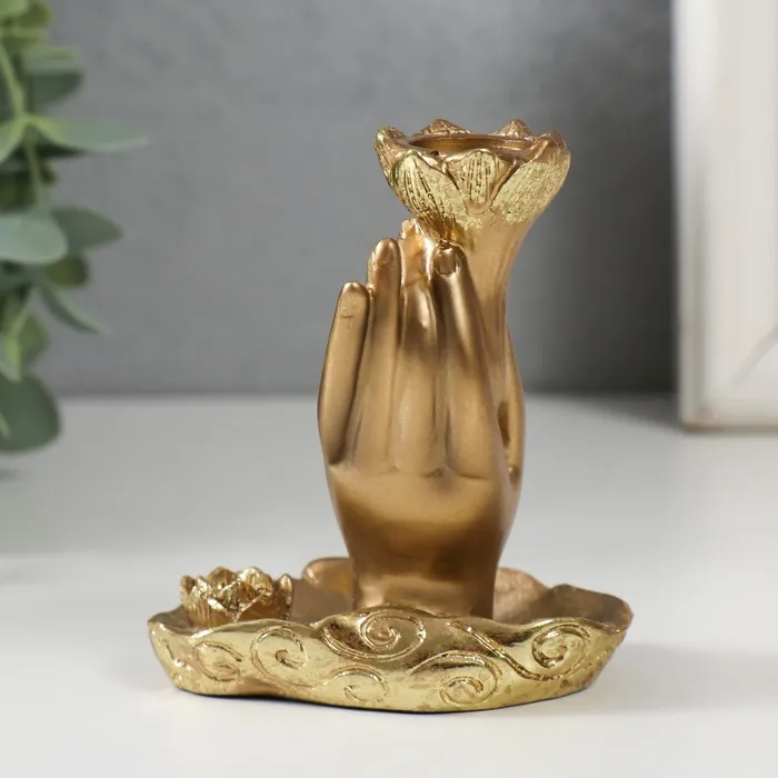 Подставка для благовоний, конусов «Цветок в руке», полистоун, 7×5.5×9 см — Характеристики