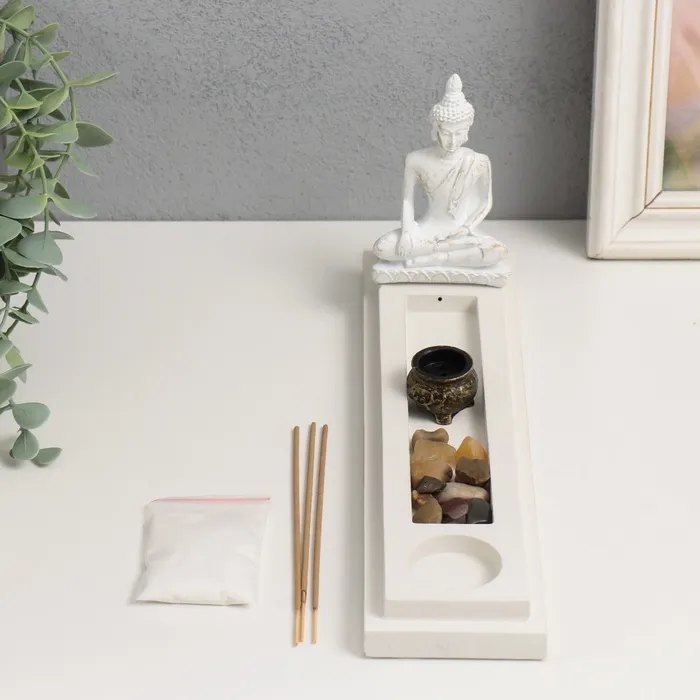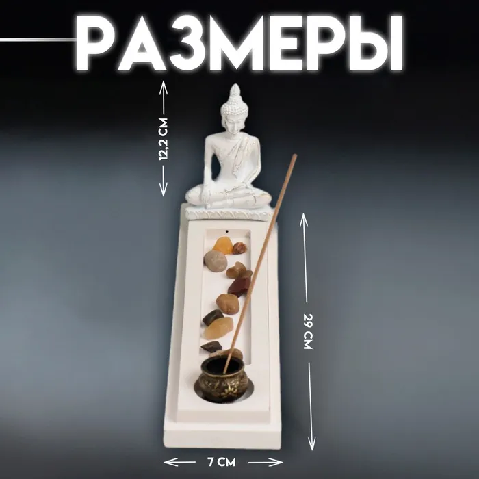 Подставка для благовоний с аромапалочками «Будда», полистоун, сад камней, 29×7×12.2 см — Характеристики
