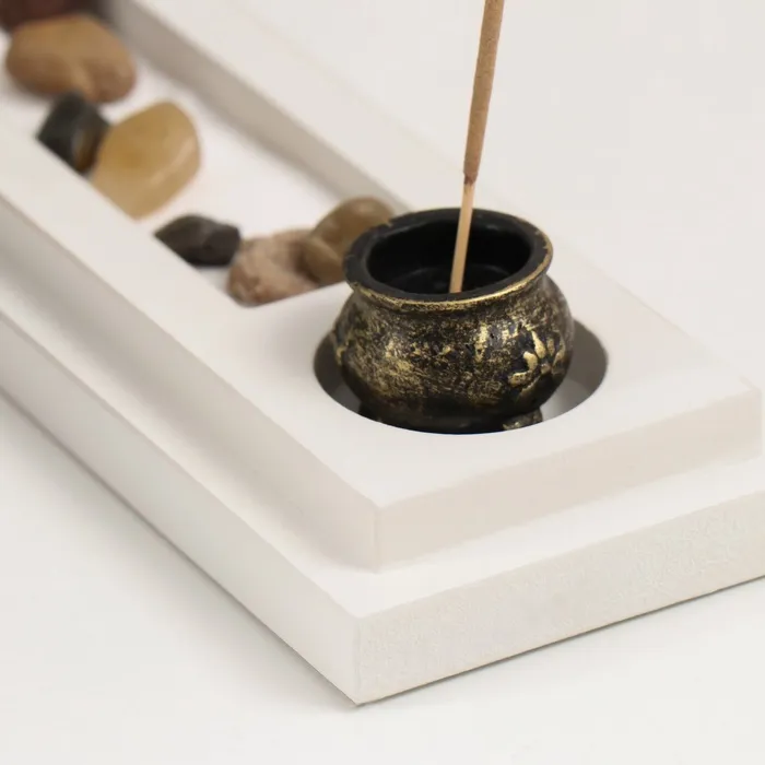 - Комплексное решение: Подставка поставляется с ароматическими палочками и декоративными камнями, сразу же готовыми к использованию.