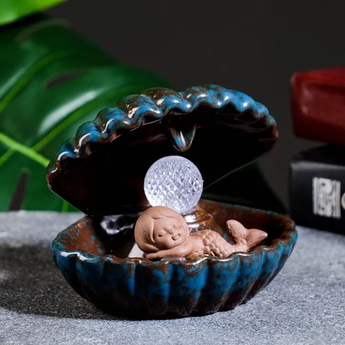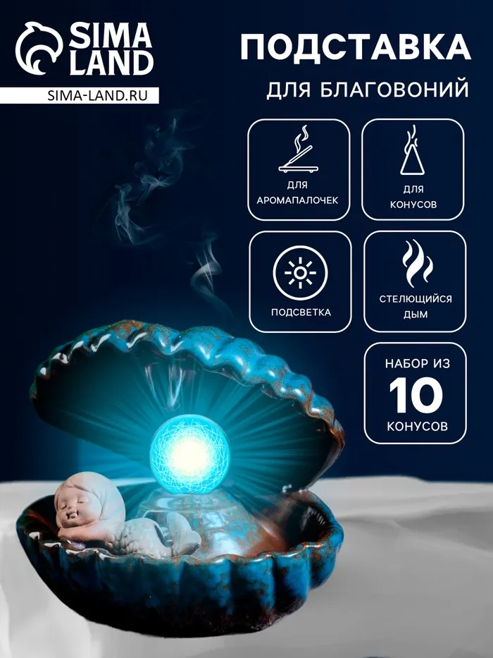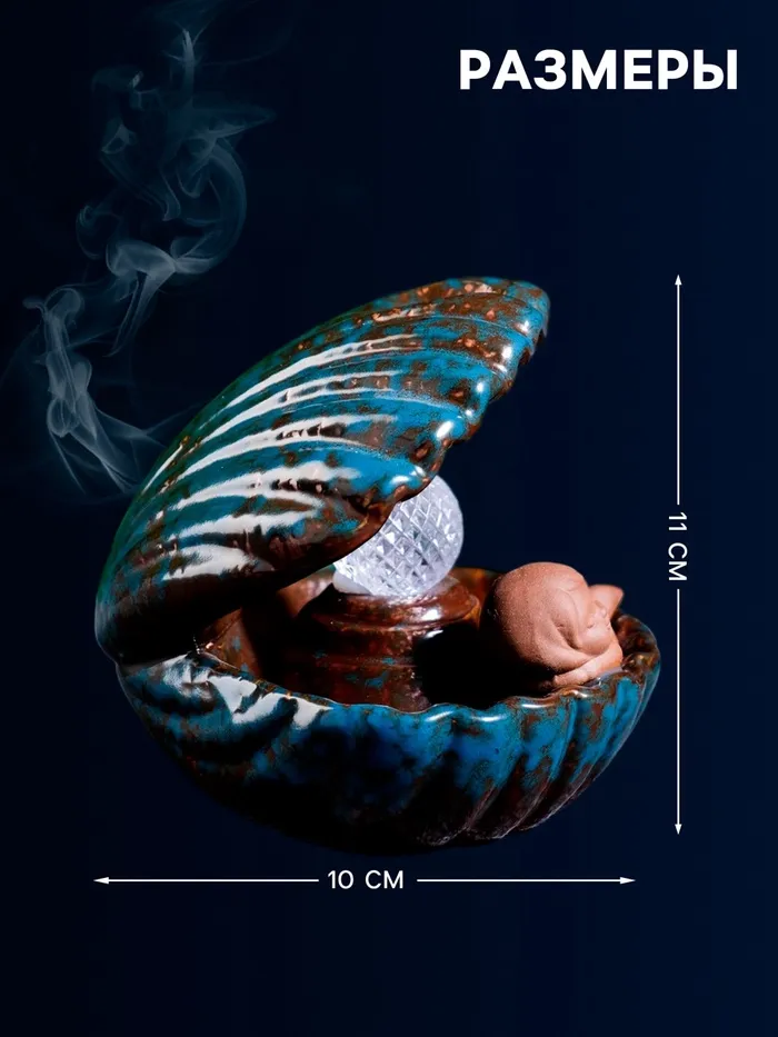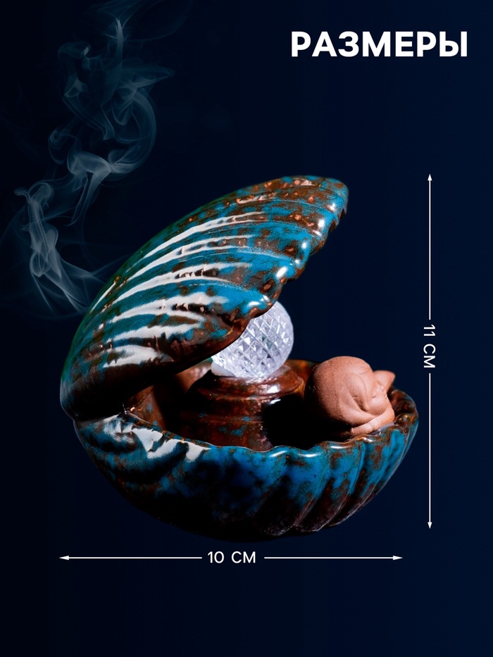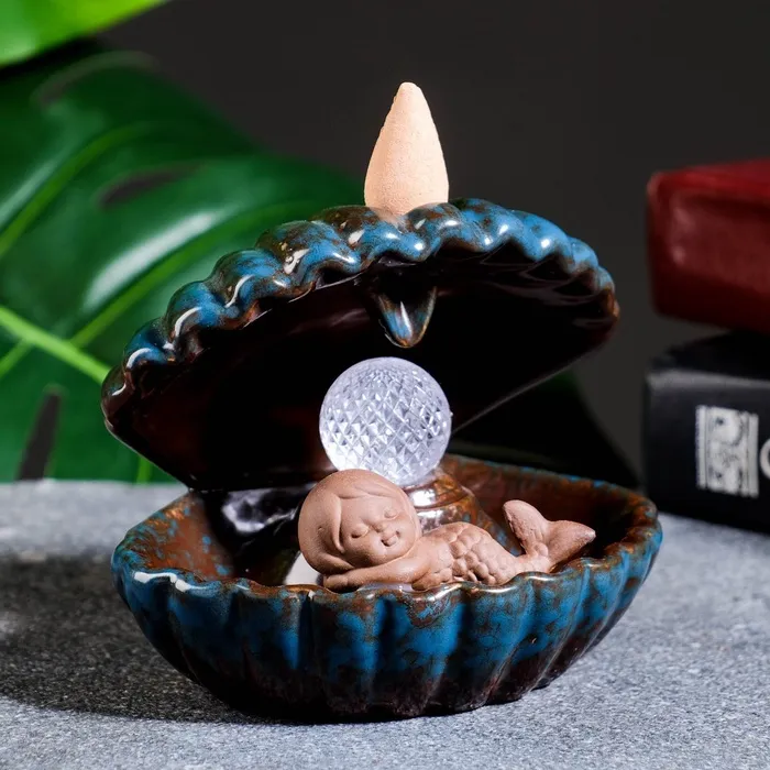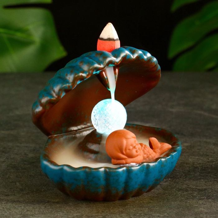 Подставка для благовоний TAKE IT EASY «Девочка в ракушке», набор благовоний конусы, стелющийся дым, 11×10 см, с подсветкой, батарейки LR44 — Характеристики