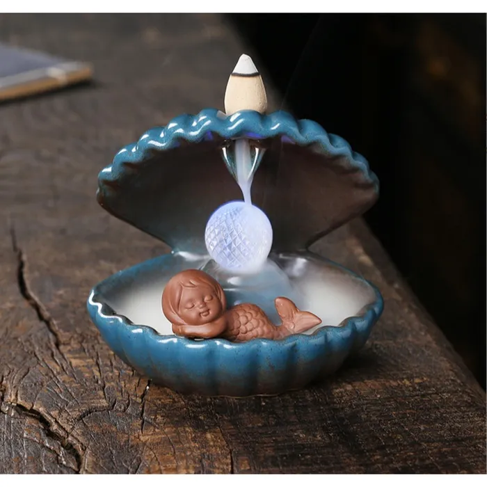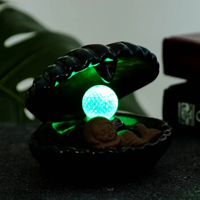 Подставка для благовоний TAKE IT EASY «Девочка в ракушке», набор благовоний конусы, стелющийся дым, 11×10 см, с подсветкой, батарейки LR44