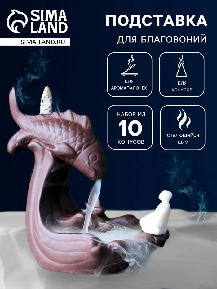 Подставка для благовоний TAKE IT EASY «Рыбка», набор благовоний конусы, стелющийся дым, 13×12см — Характеристики