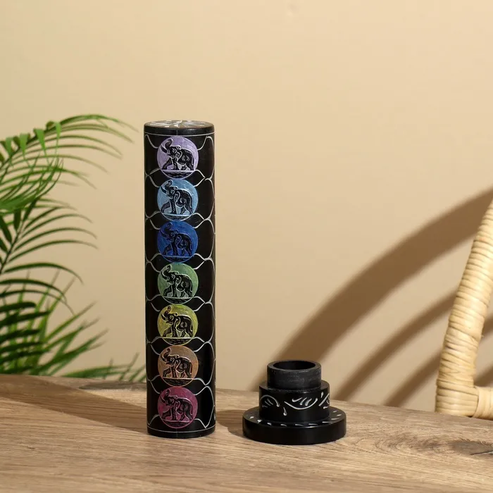 Подставка для благовония "Башня 7 чакр. Слоны" камень 26 см