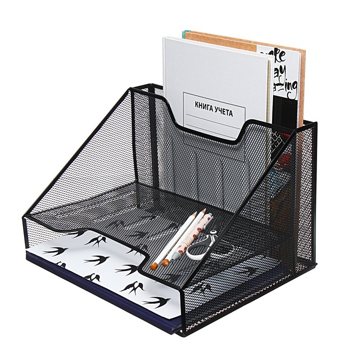 Подставка для бумаг Calligrata, настольная, 3 отделения, сетка, металлическая, чёрная — Характеристики