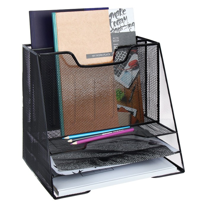 Настольный органайзер из металла в стильном чёрном цвете становится незаменимым помощником для организации рабочего пространства. Секционный дизайнерский подход помогает уместить всё важное в одном месте, подойдя как для офиса, так и для домашнего кабинета. Эстетичный и функциональный, он вносит в порядок визуальное спокойствие и структурированность.