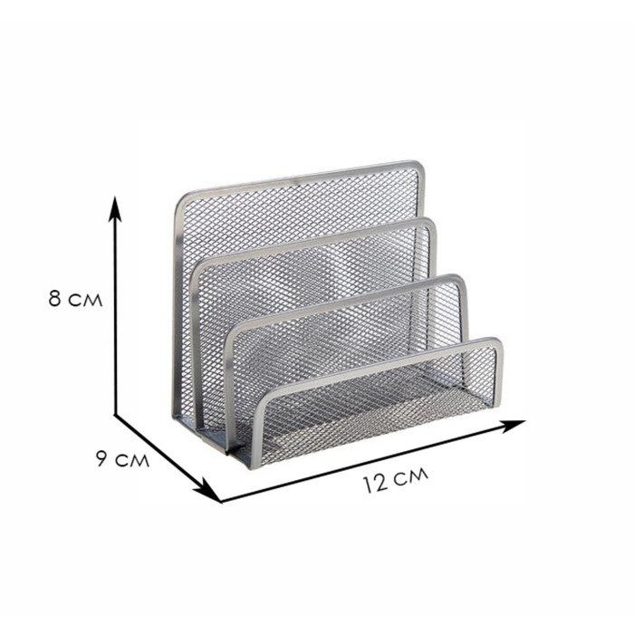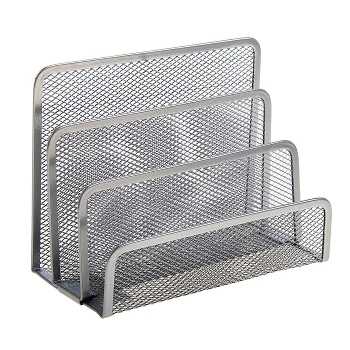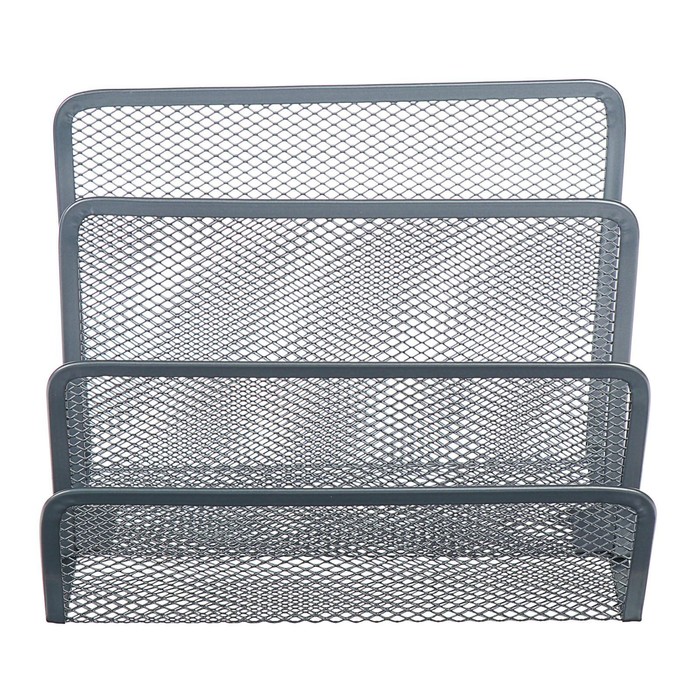 Обеспечивает легкий доступ к содержимому подставки.Изготовлена из высококачественной прочной металлической сетки.Выполнена в сером цвете.Упакована в индивидуальный пакет.Подставка для бумаг поможет легко и эффективно организовать рабочее место.