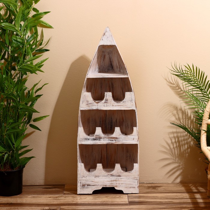 Подставка для бутылок «Лодка», 37×20×100 см, дерево албезия, белая — Характеристики
