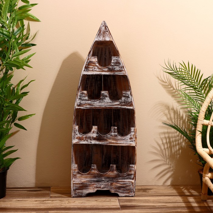 Подставка для бутылок «Лодка», 37×20×100 см, дерево албезия, светло-коричневая — Характеристики