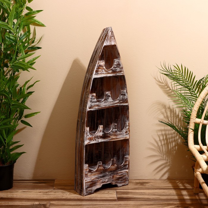 Подставка для бутылок «Лодка», 37×20×100 см, дерево албезия, светло-коричневая — Характеристики