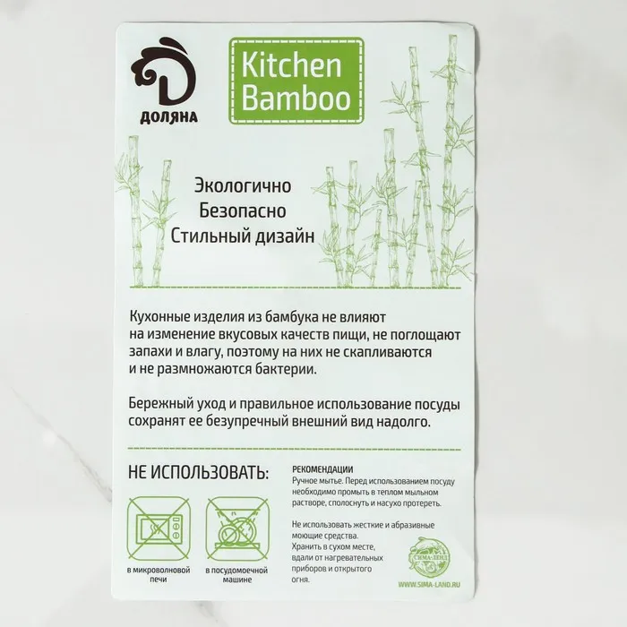 - Прочность и долговечность: изготовлена из прочного бамбука, что делает ее устойчивой к механическим повреждениям и простой в уходе.