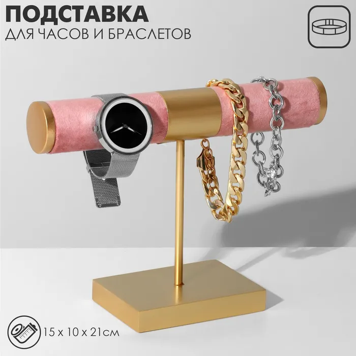 Подставка для часов, браслетов, d=3, 15×10×21 см, цвет светло-розовый в золоте — Характеристики