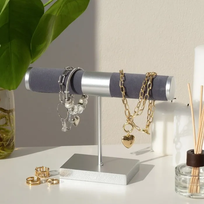 Подставка для часов, браслетов QF, d=3, 15×10×21 см, цвет серый в серебре — Характеристики