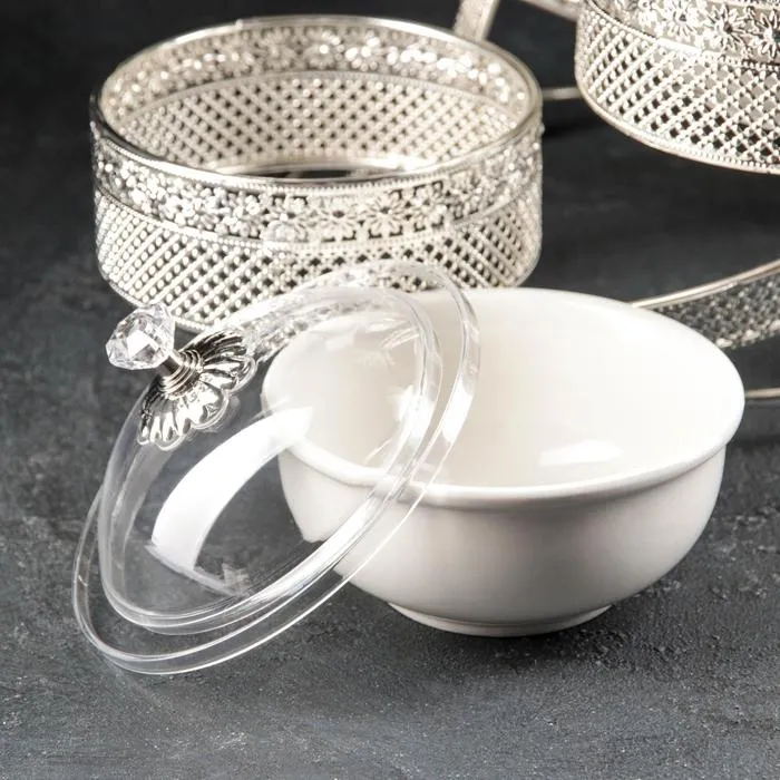 Подставка для десертов позволит эффектно подать сладости и закуски к праздничному столу. Подставка выполнена из металла «под серебро».