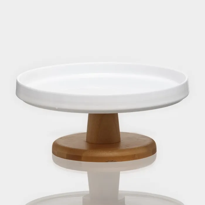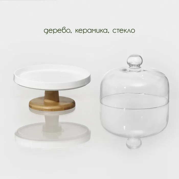 Подставка для десертов с крышкой-клош на деревянной ножке BellaTenero, d=24 см, керамика, белая — Характеристики