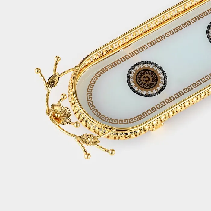 Подставка для десертов «Веер», 57×15×7 см, металл, стекло, золотистая — Характеристики