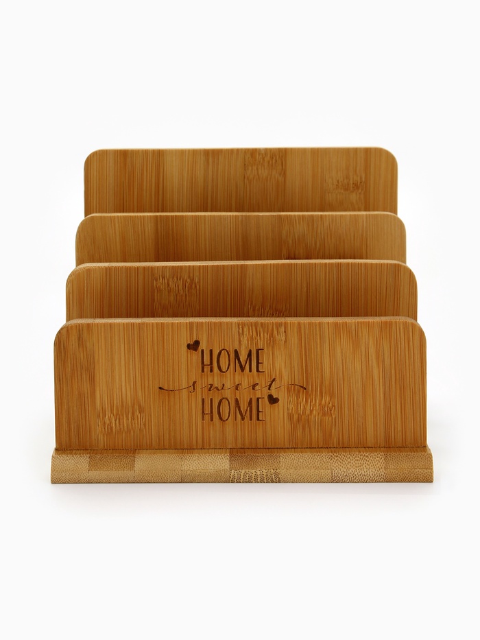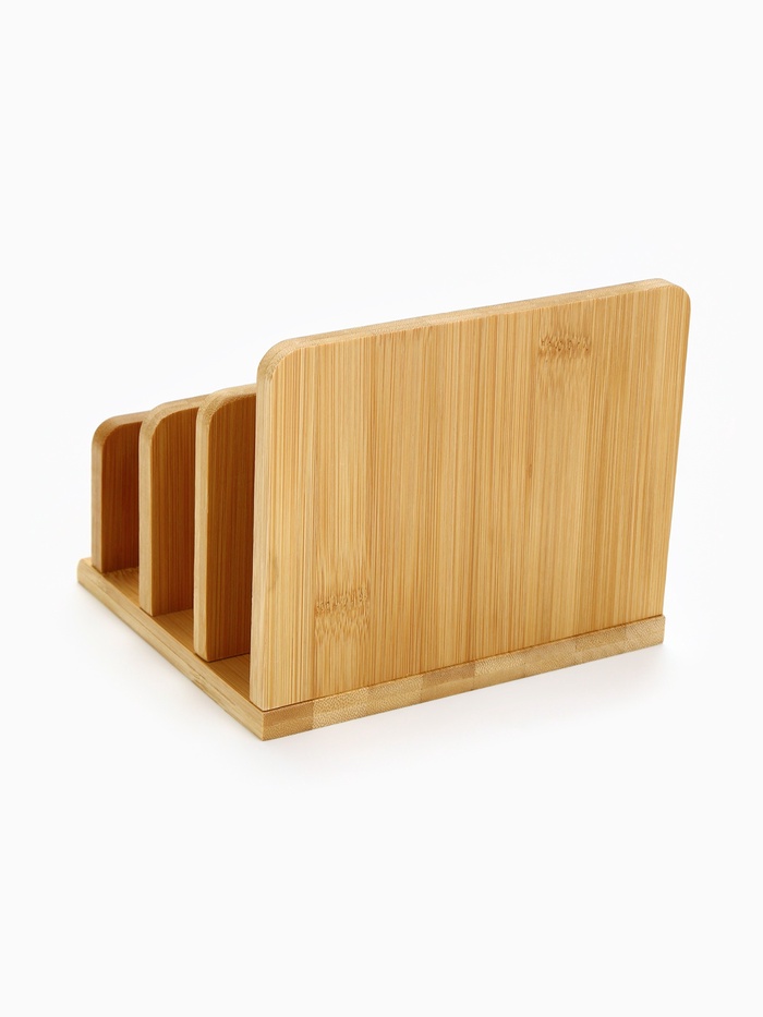 Подставка «Home» — это тихий порядок на кухонной столешнице, вырезанный из бамбука. Её коричневый оттенок — не просто цвет, а отзвук тёплого дерева, как полки в доме, где всё на своих местах. Можно поставить доски после нарезки, не пряча их в шкаф, а оставляя в зоне видимости — как намёк на то, что кухня ждёт следующего жеста заботы.