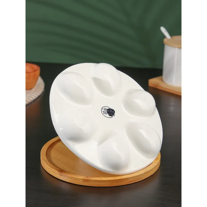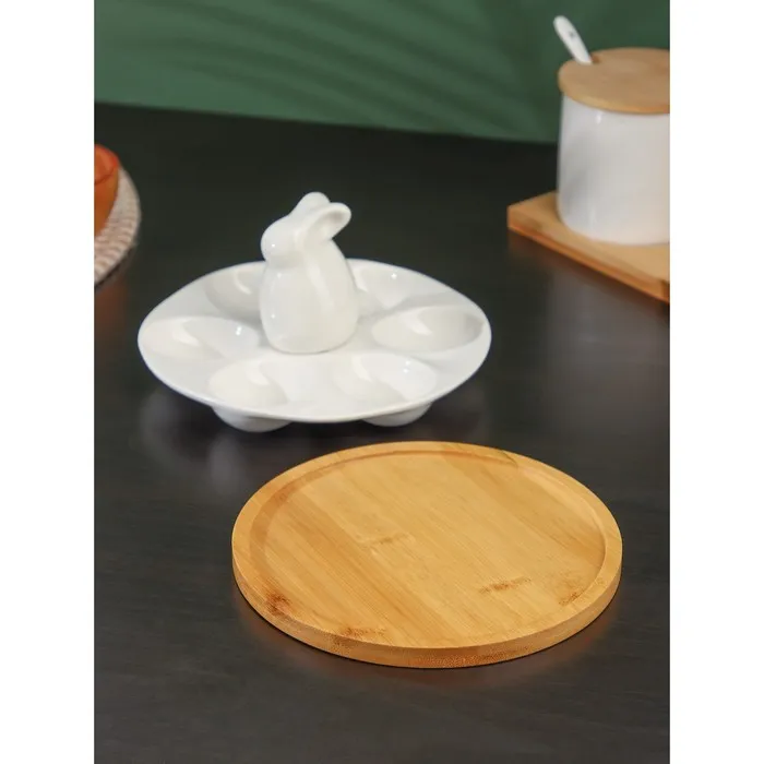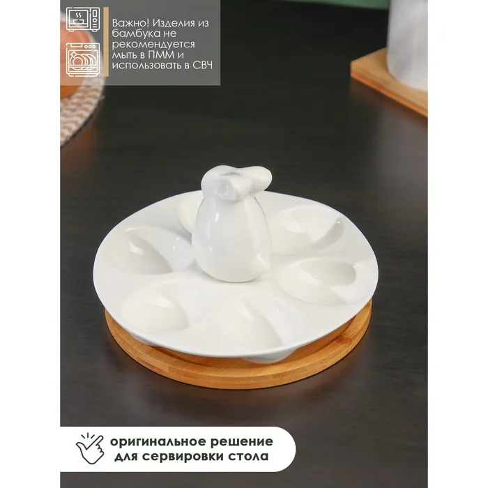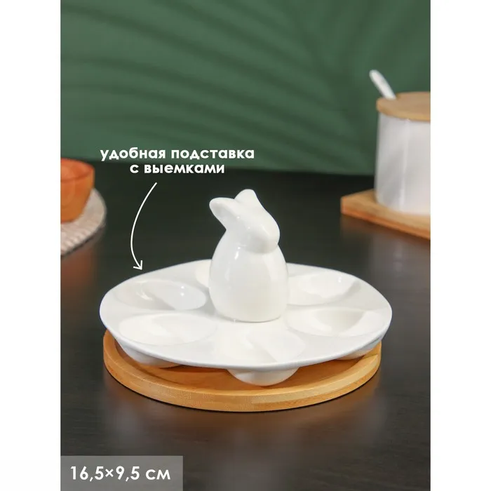 Подставка для яиц 6 ячеек BellaTenero «Зайка», 16.5×9.5 см, фарфор, белая — Характеристики
