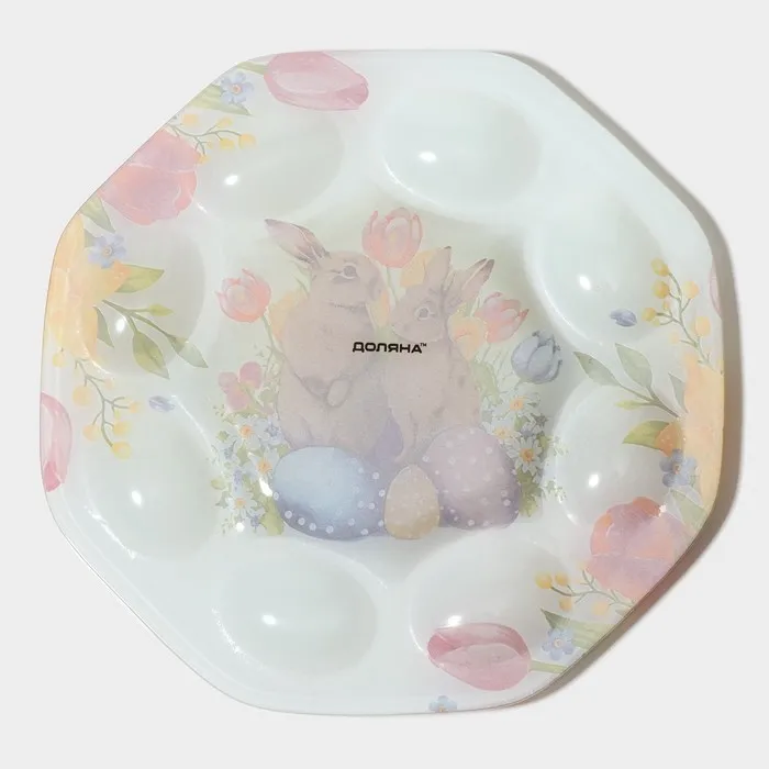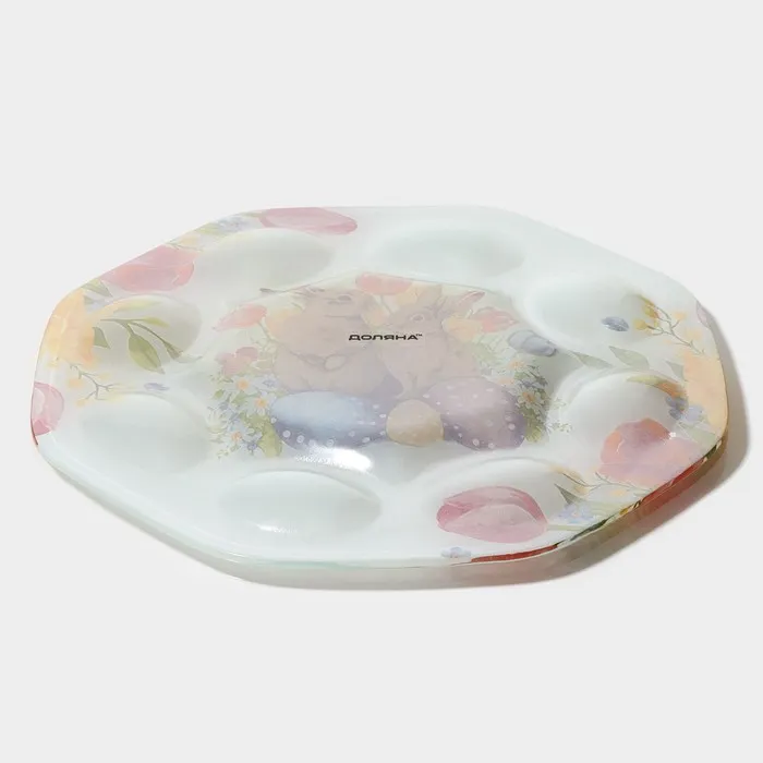 Подставка для яиц станет оригинальным решением для сервировки во время пасхальных торжеств и других пышных праздников. Посуда изготовлена из стекла и украшена тематическим рисунком. Классический дизайн изделия делает его гармоничным дополнением к любому варианту оформления стола.