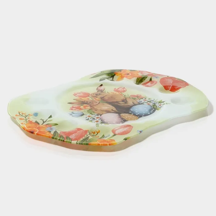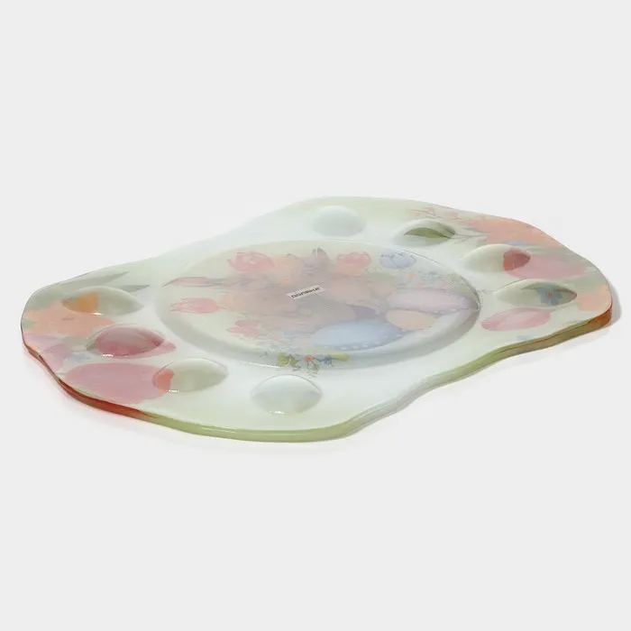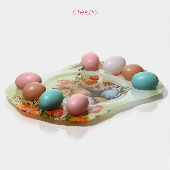 Подставка для яиц Доляна «Акварель», 8 ячеек, 38×27 см, под кулич d=20 см, стекло — Характеристики