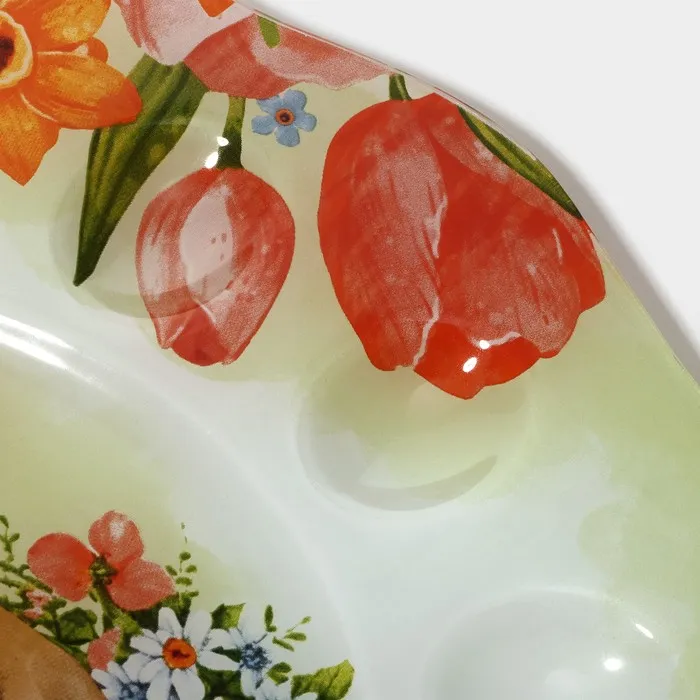 Подставка для яиц станет оригинальным решением для сервировки во время пасхальных торжеств и других пышных праздников. Посуда изготовлена из стекла и украшена тематическим рисунком. Классический дизайн изделия делает его гармоничным дополнением к любому варианту оформления стола.