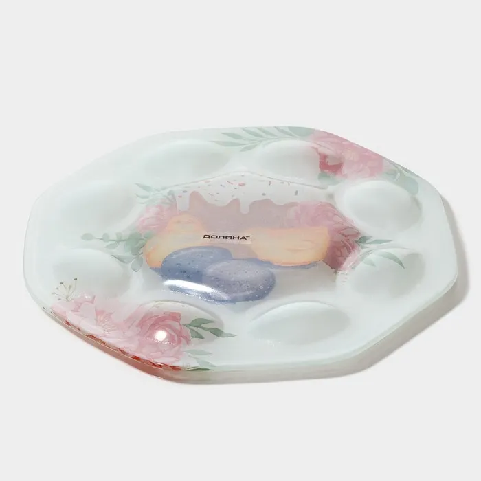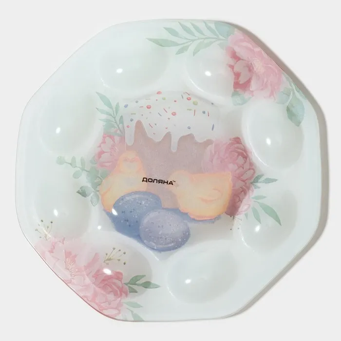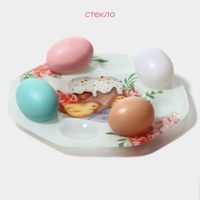 Подставка для яиц станет оригинальным решением для сервировки во время пасхальных торжеств и других пышных праздников. Посуда изготовлена из стекла и украшена тематическим рисунком. Классический дизайн изделия делает его гармоничным дополнением к любому варианту оформления стола.
