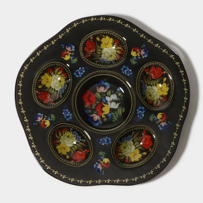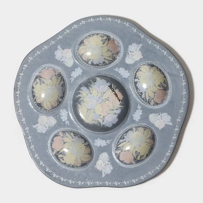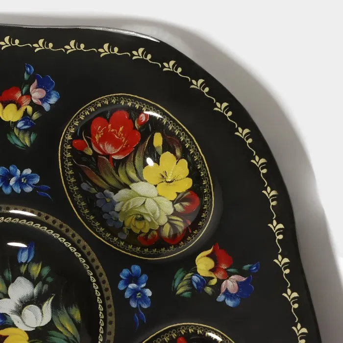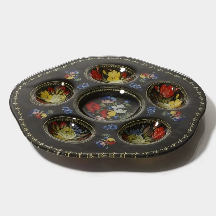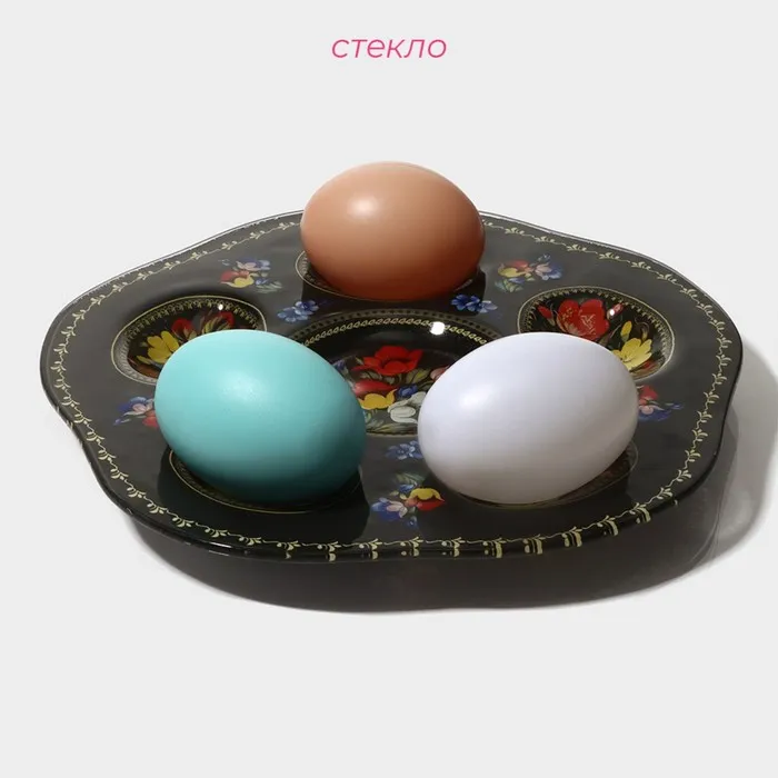 Подставка для яиц Доляна «Жостовская роспись», 5 ячеек, 20×20 см, стекло, чёрная — Характеристики