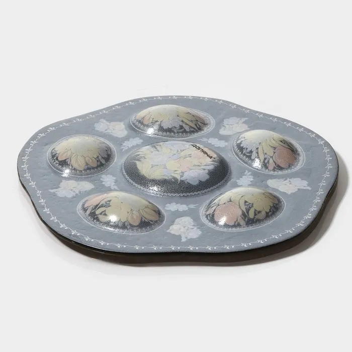 Подставка для яиц Доляна «Жостовская роспись», 5 ячеек, 20×20 см, стекло, чёрная