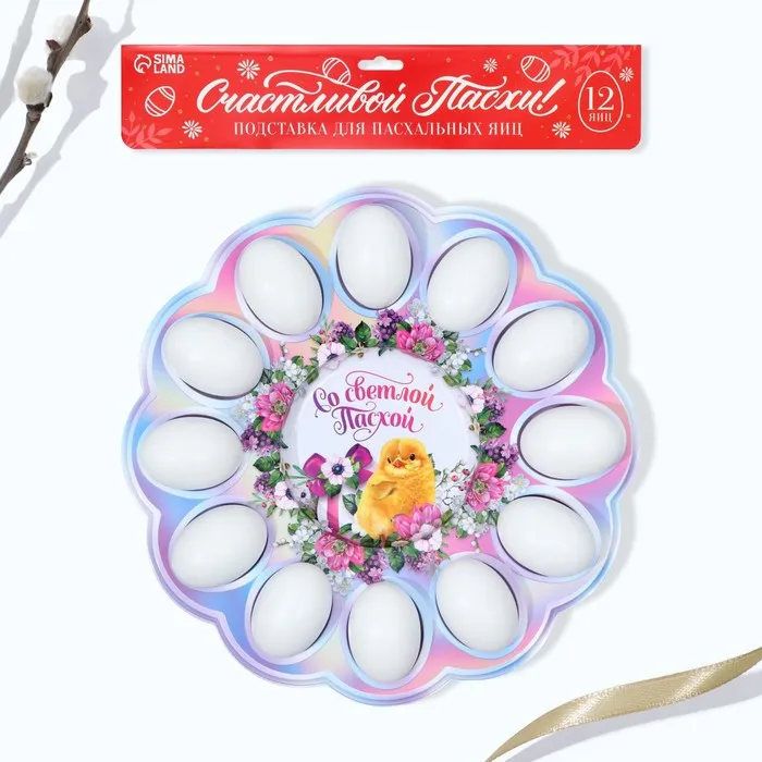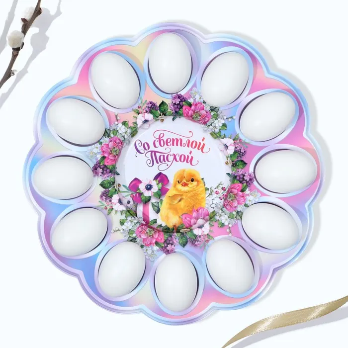 Перед светлым праздником Пасхи хочется украсить свой стол. Пасхальная подставка для яиц и кулича станет хорошим украшением для праздничного стола. Пасхальная подставка для яиц изготовлена из пластика, имеет полноцветное яркое изображение и интересную гравировку. Аксессуар станет достойным украшением праздничного стола, создаст радостное настроение и наполнит пространство дома благодатной энергией на год вперёд. Светлой Вам Пасхи!