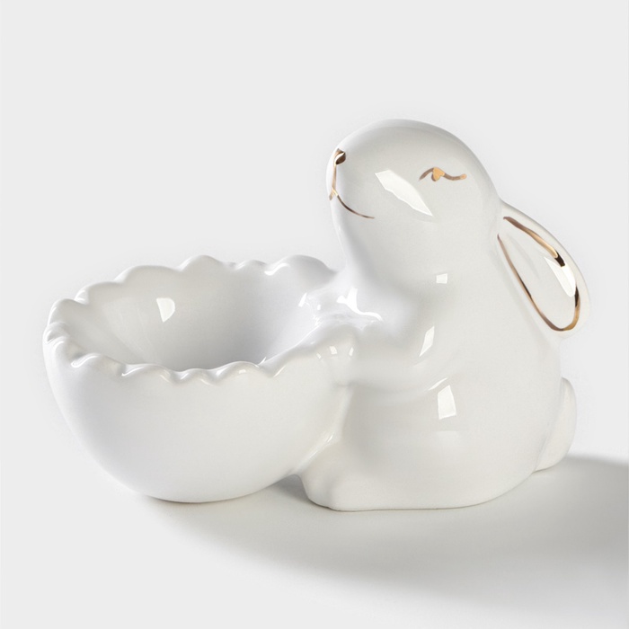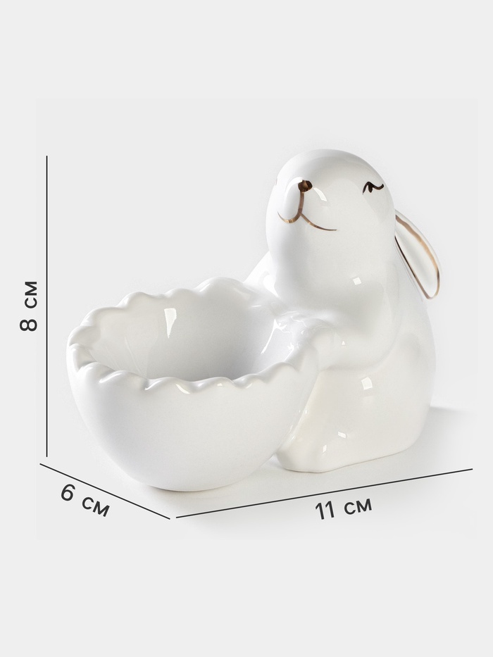 Подставка для яйца Доляна «Зайка в золотом», 11×6×8 см, белая — Характеристики
