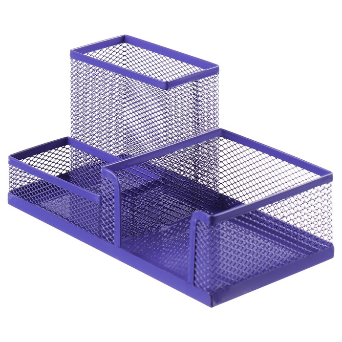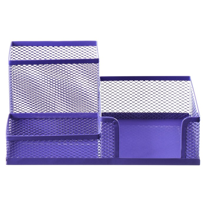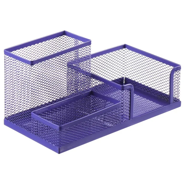 Подставка для канцелярских мелочей 3 отделения, сетка металл, фиолетовая