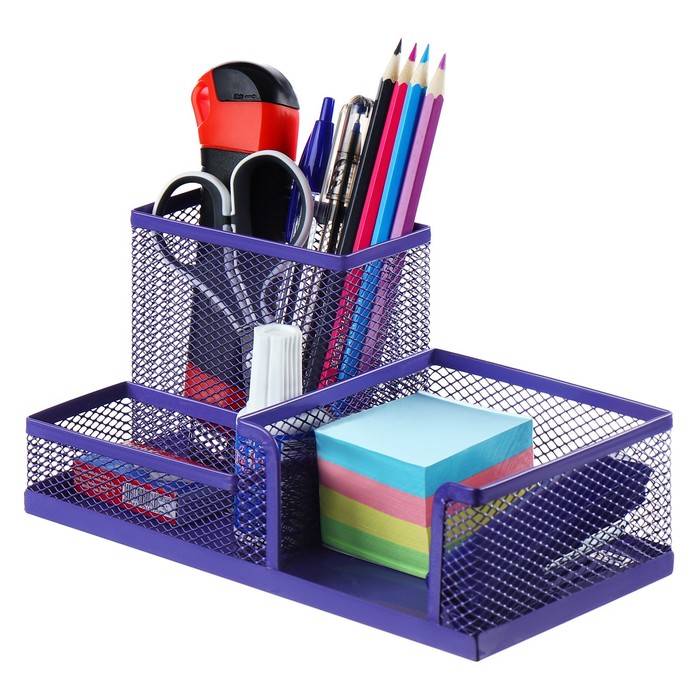 Подставка для канцелярских мелочей 3 отделения, сетка металл, фиолетовая — Характеристики