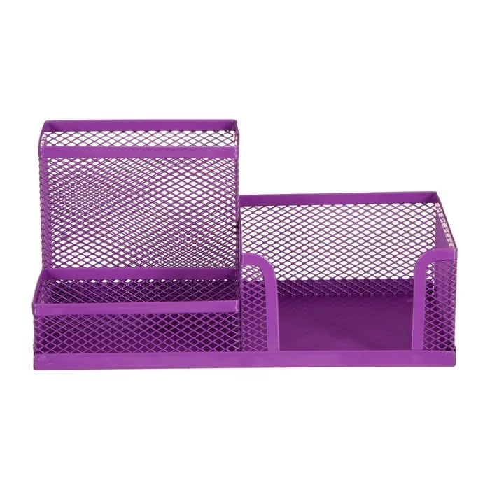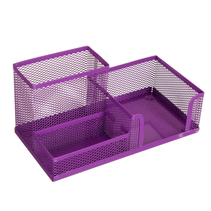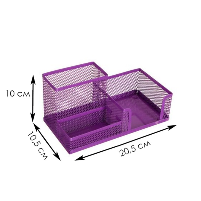Подставка для канцелярских мелочей, 3 отделения, сетка, металл, сиреневая — Характеристики
