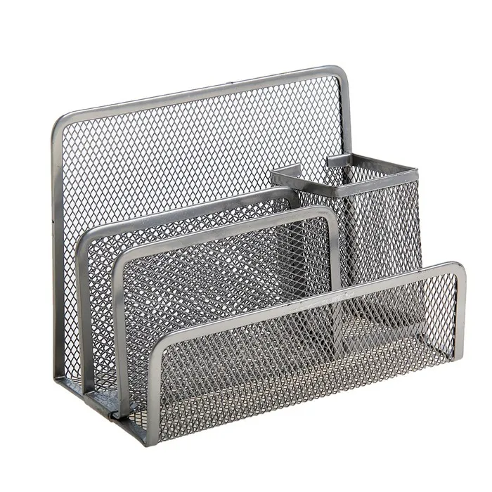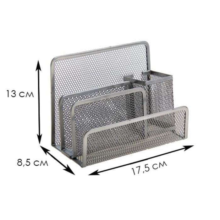 Подставка для канцелярских мелочей 4 отделения, серая, сетка — Характеристики