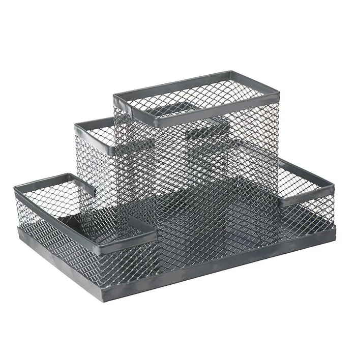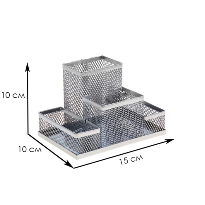 Подставка для канцелярских мелочей 4 отделения, светлая, металлическая сетка — Характеристики