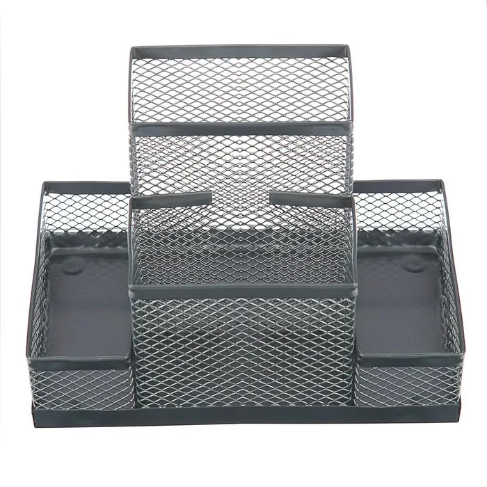 Подставка для канцелярских мелочей 4 отделения, светлая, металлическая сетка