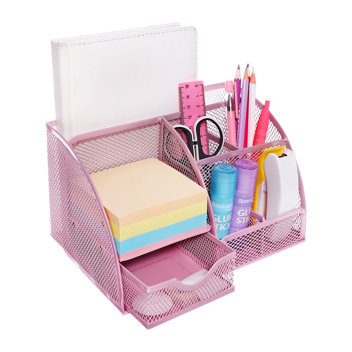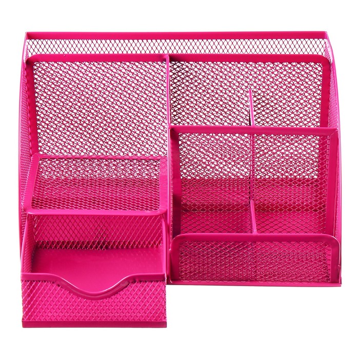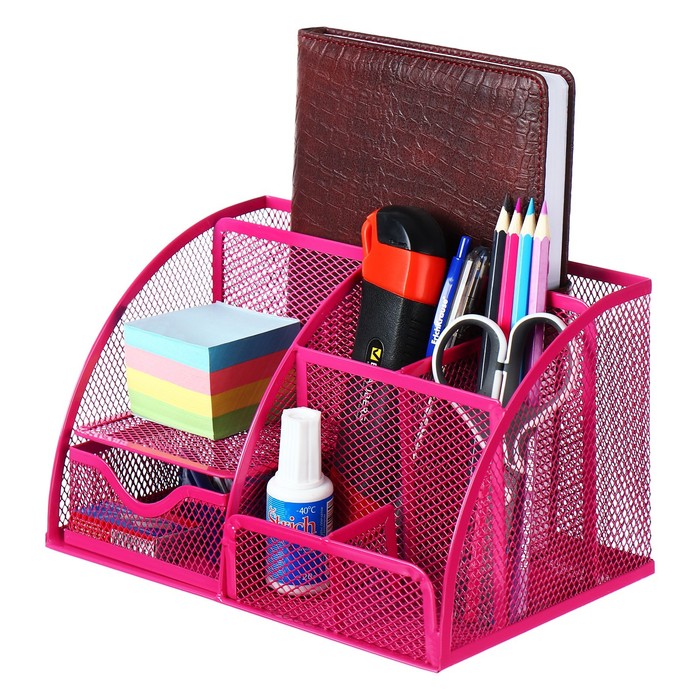 Подставка для канцелярских мелочей 7 отделений, сетка металл, розовая — Характеристики