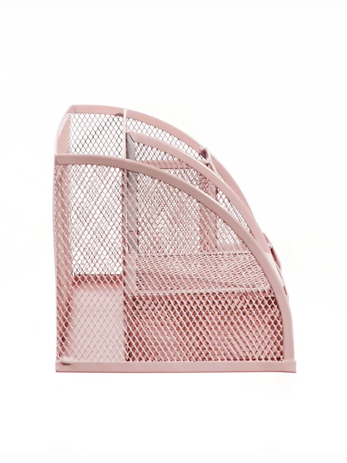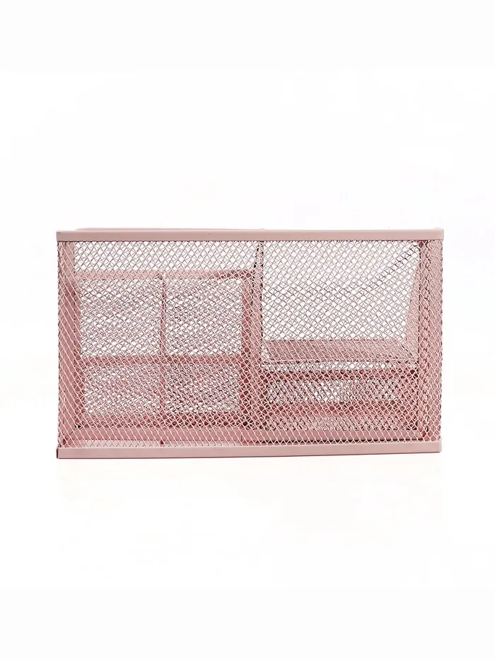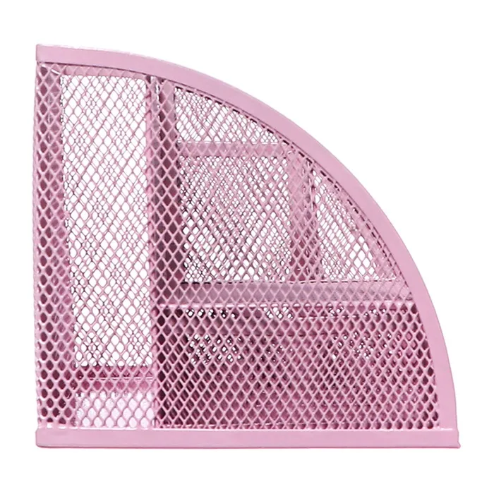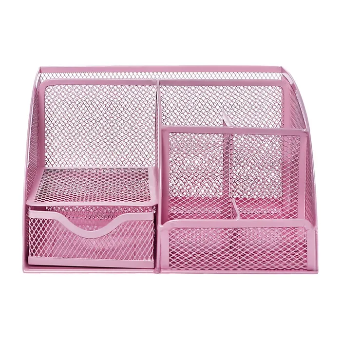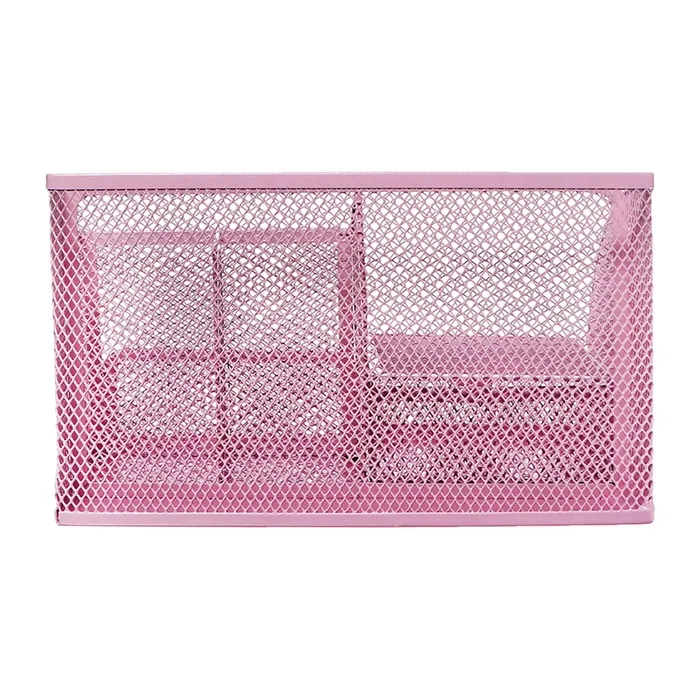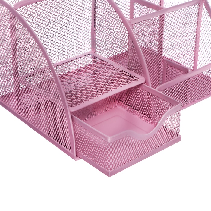 Подставка для канцелярских мелочей 7 отделений, сетка металл, розовая