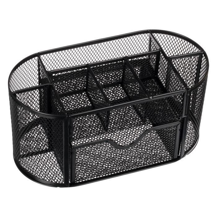 Подставка для канцелярских мелочей 9 отделений, сетка металл, чёрная — Характеристики