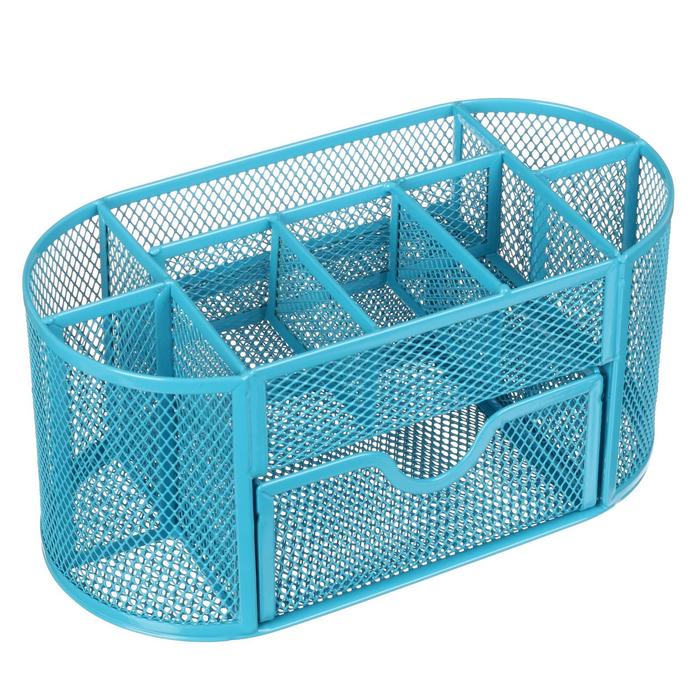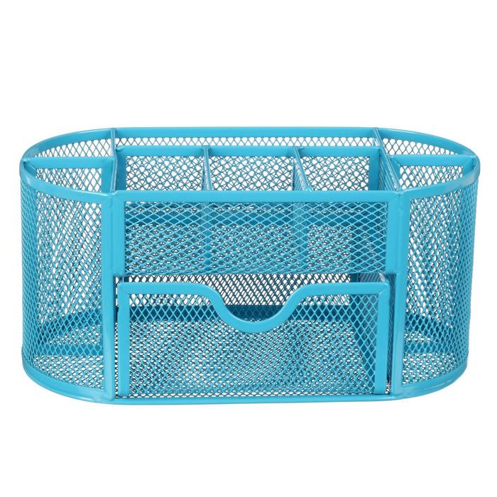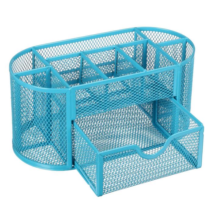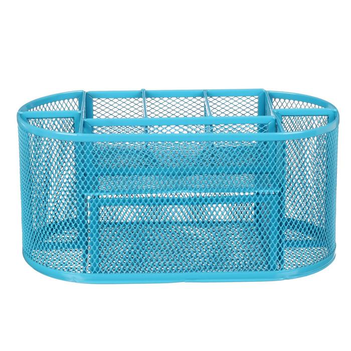 Подставка для канцелярских мелочей 9 отделений, сетка металл, голубая — Характеристики