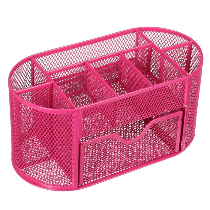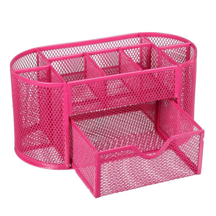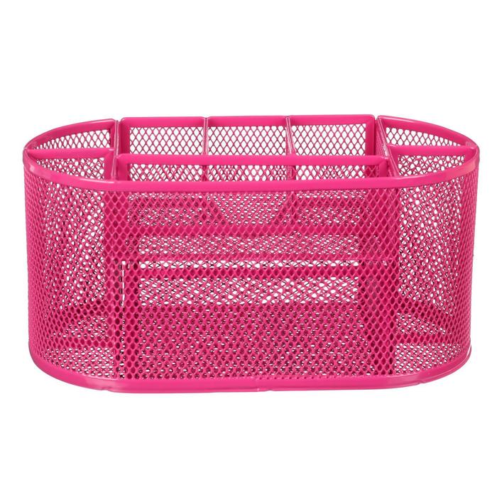 Подставка для канцелярских мелочей 9 отделений, сетка металл, розовая — Характеристики