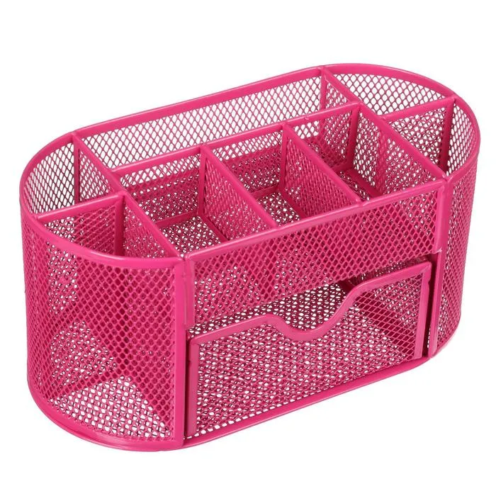 Подставка для канцелярских мелочей 9 отделений, сетка металл, розовая