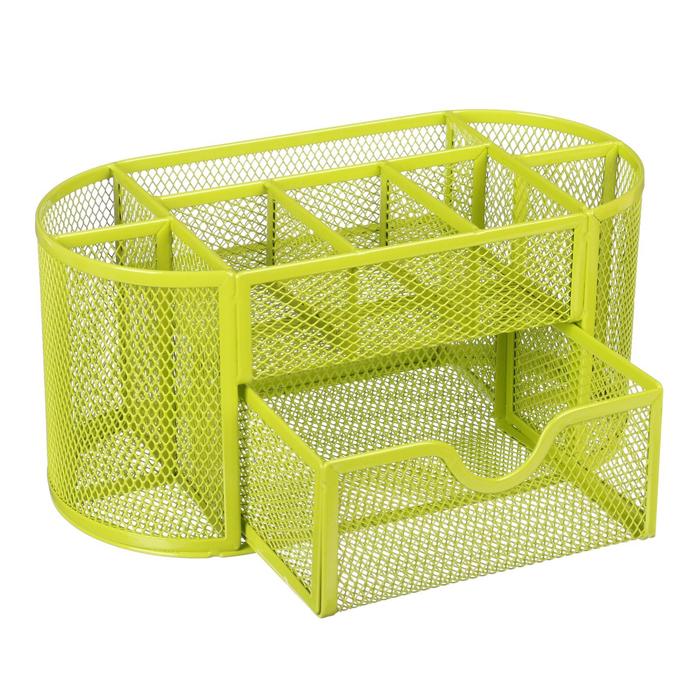 Подставка для канцелярских мелочей 9 отделений, сетка металл, зелёная