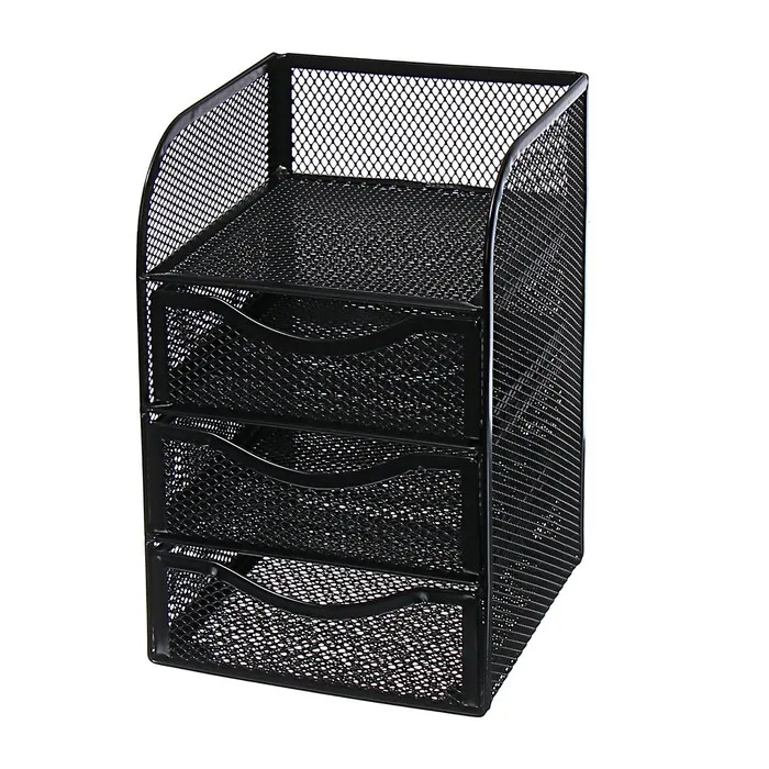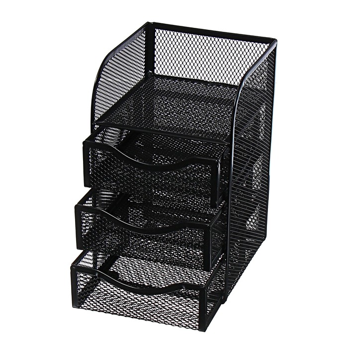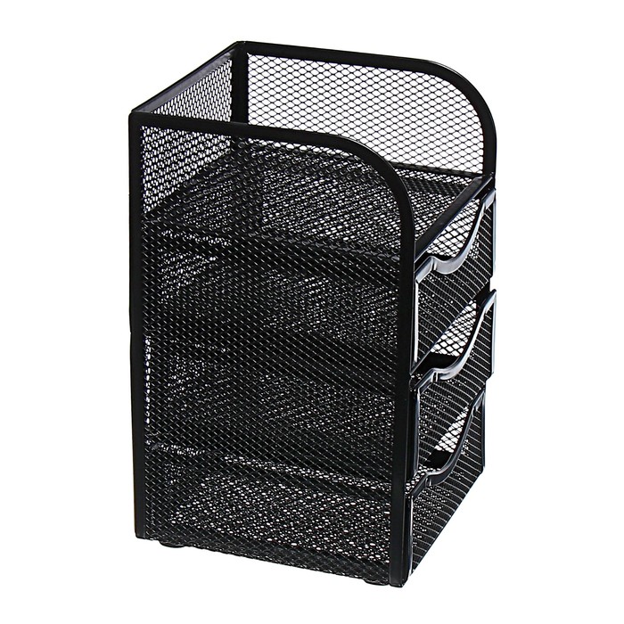 Настольный органайзер для канцелярии станет стильным и функциональным дополнением вашего рабочего пространства. Он предлагает оптимальную организацию благодаря четырём отсекам, которые помогут упорядочить все необходимые канцелярские принадлежности. Прочный металлический каркас и элегантный чёрный цвет делают этот набор универсальным решением для офиса и дома.