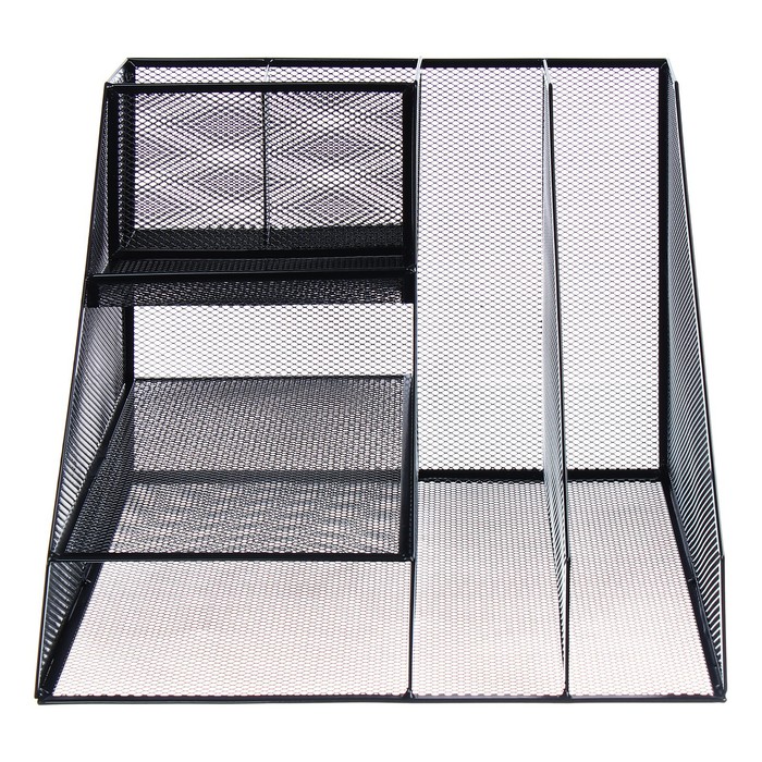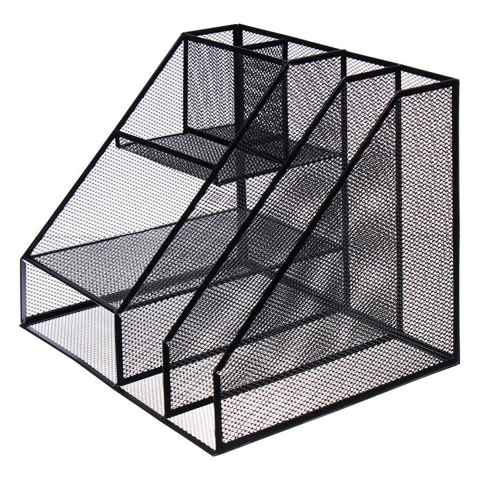 Порядок на столе с первого взгляда! Металлическая подставка-органайзер — это система хранения для рабочего стола с семью отделениями. Сетчатая конструкция из черного металла помогает содержать канцелярские принадлежности в организованном состоянии.