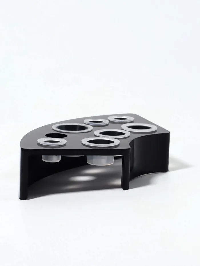 Компактная подставка чёрного цвета станет Вашим надёжным помощником в организации рабочего пространства. Удобные секции делают её идеальным решением для хранения мелких предметов, будь то инструменты для татуировки или другие необходимые аксессуары.