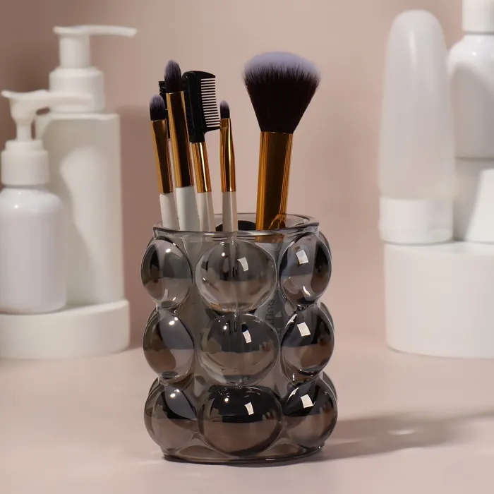 Стильное решение для организации пространства на вашем туалетном столике или в салоне красоты — это подставка для косметических принадлежностей «Bubble». Компактные размеры 10 x 8 см делают её универсальной для хранения как косметики, так и маникюрных инструментов.