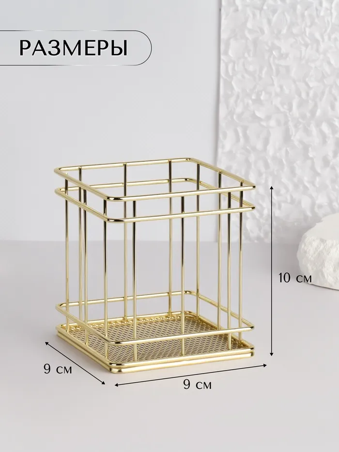 Подставка для хранения «РАФАЭЛЬ», 9×9×10 см, цвет золотистый — Характеристики
